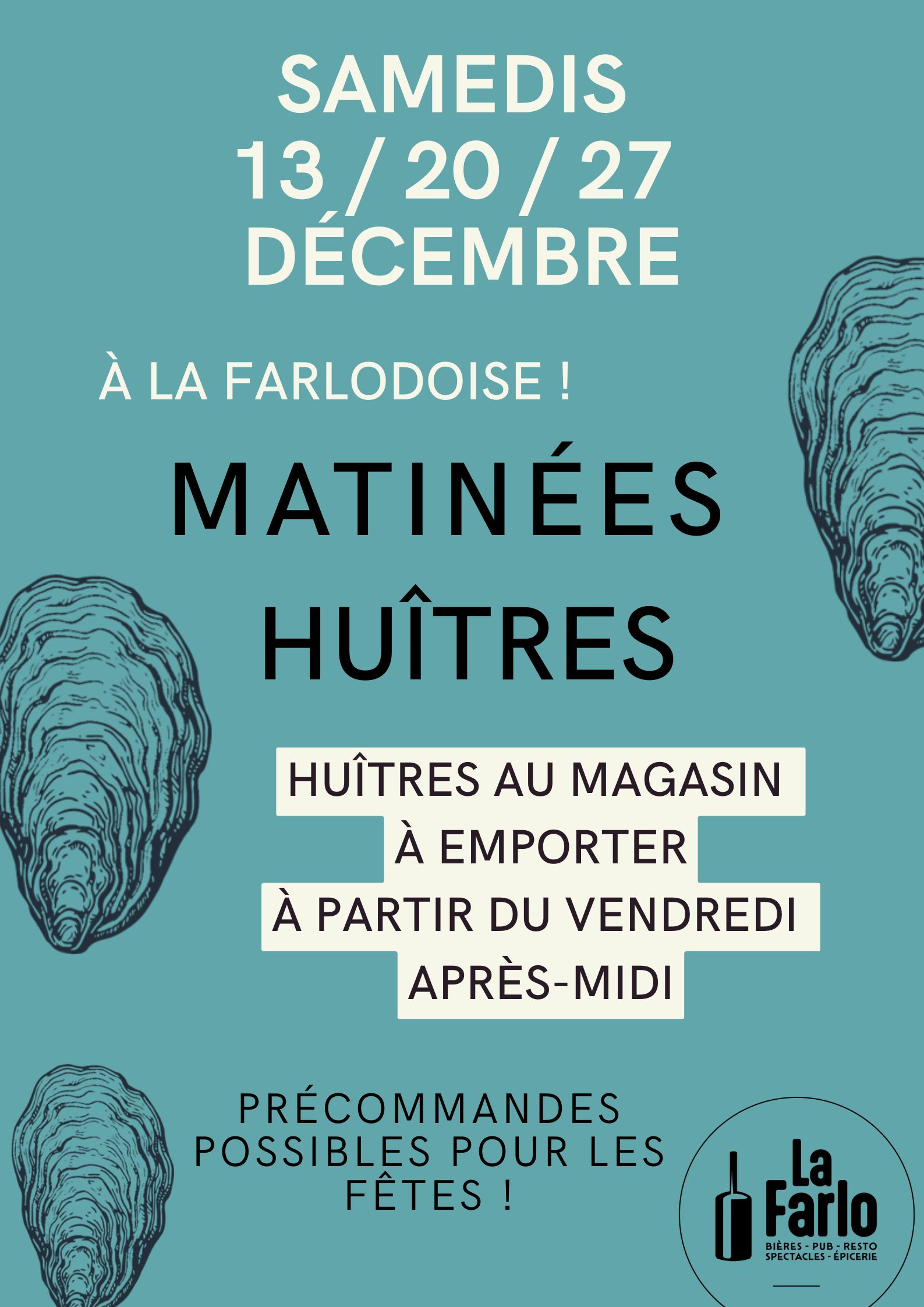 Matinée Huîtres les 3 prochains samedis de décembre : 13 / 20 et 27 décembre